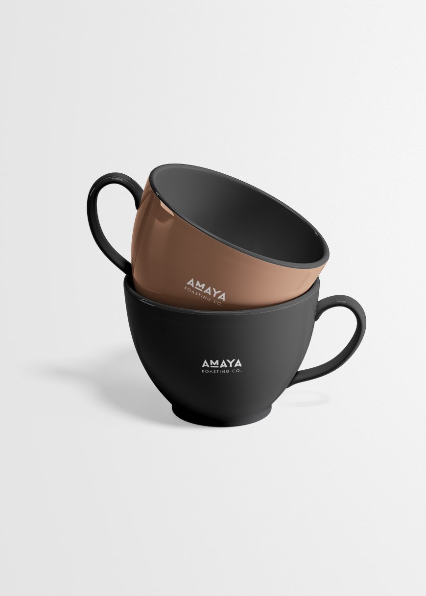 8oz. AMAYA branded breakfast mug in black or brown.
